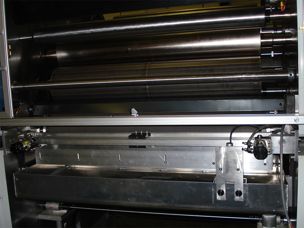 The SI High Speed Topside UV Coater is designed for applying various types of dull, high-gloss and textured UV cured coatings on products such as covers and inserts on a web as an inline operation. The unit is independently servo driven with the servo motor, software and controls provided by SI.