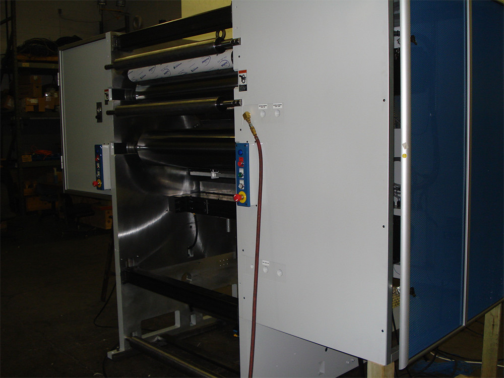 The SI High Speed Topside UV Coater is designed for applying various types of dull, high-gloss and textured UV cured coatings on products such as covers and inserts on a web as an inline operation. The unit is independently servo driven with the servo motor, software and controls provided by SI.